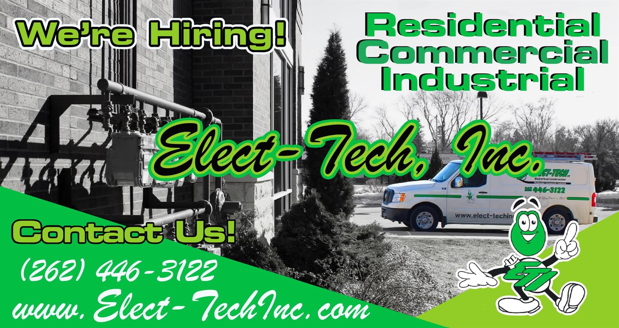 Elect-Tech, Inc. has been serving southeastern Wisconsin with quality electrical services since 2006. Our certified electricians are capable of handling residential, commercial and industrial electrical systems. After contacting us our office will call you to discuss your needs and arrange for one of our certified electricians to visit your property. You then will be provided a free estimate for the work needed.